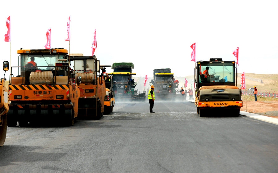 6月23,二廣高速公路二連浩特至賽漢塔拉段正在緊張施工中。
